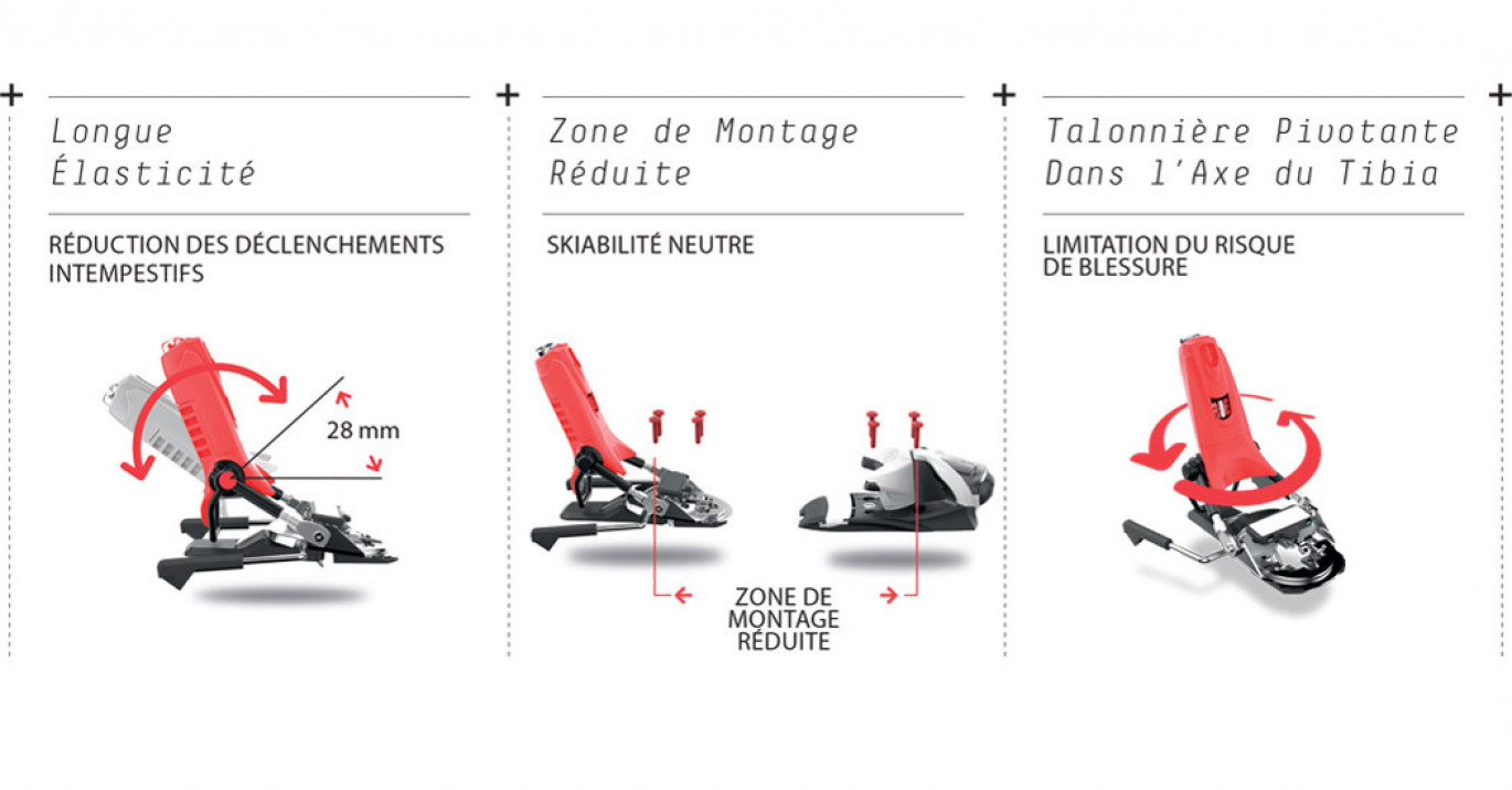 Une grande course élastique permet d’éviter au maximum les déclenchements intempestifs tout en respectant les valeurs de déclenchements des normes ISO internationales. Pour skier en sécurité et en toute confiance. L’implantation raccourcie est à l’origine d’un comportement très neutre et naturel des skis et offre une maîtrise optimale du flex. La talonnière PIVOT accompagne les déclenchements selon l’axe du tibia pour limiter au maximum le risque de blessure et offre une course élastique record de 28 mm.