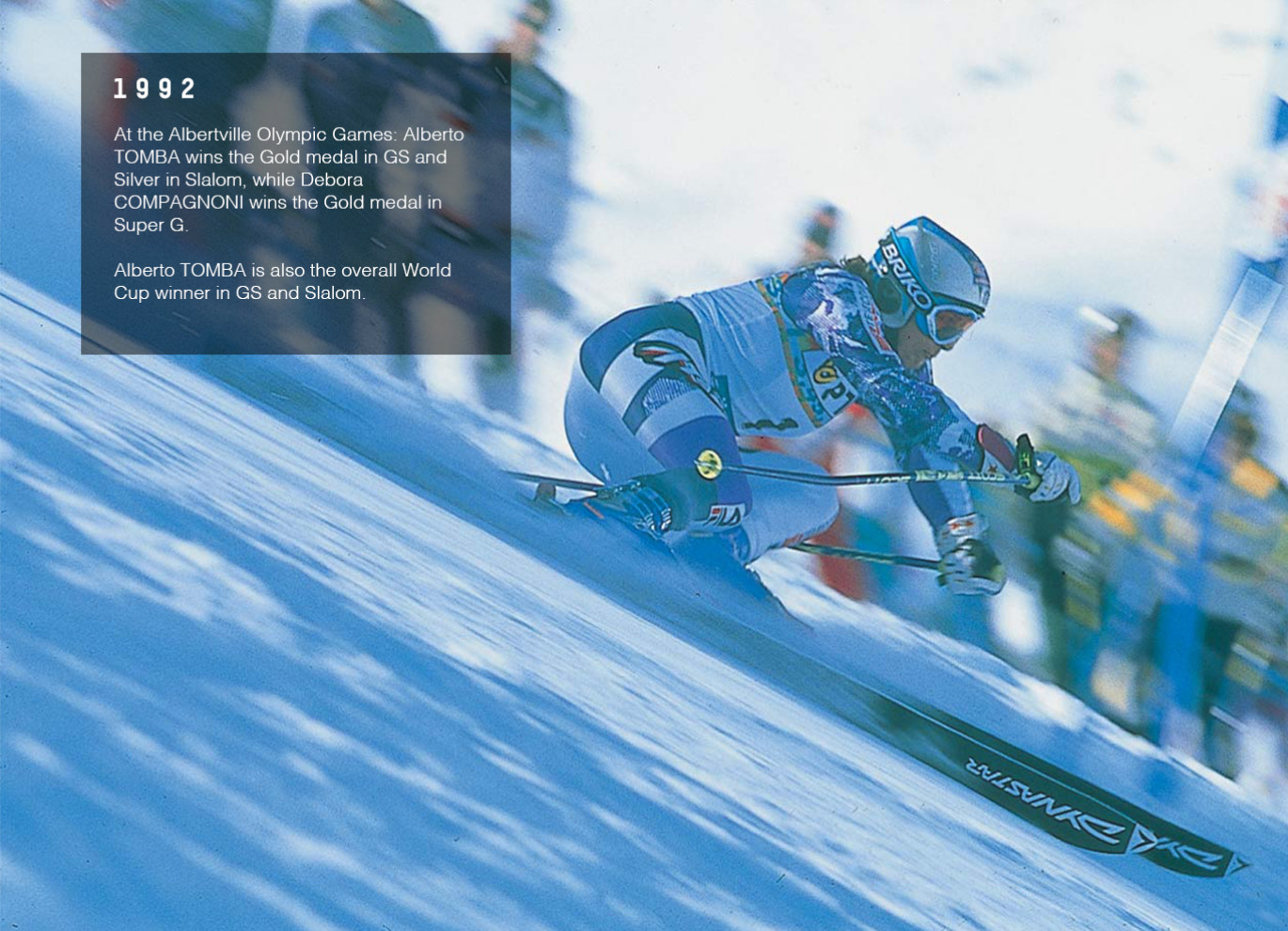 Alberto TOMBA wins the Silver medal in Slalom at the Lillehammer Olympic Games; as well as the 1995 Slalom World Cup and Overall.