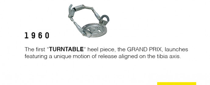 Mr Jean BEYL develops the first “safety ski binding”: the "Anti-Fracture", featuring a rotating plate on the ski with lateral elastic travel.