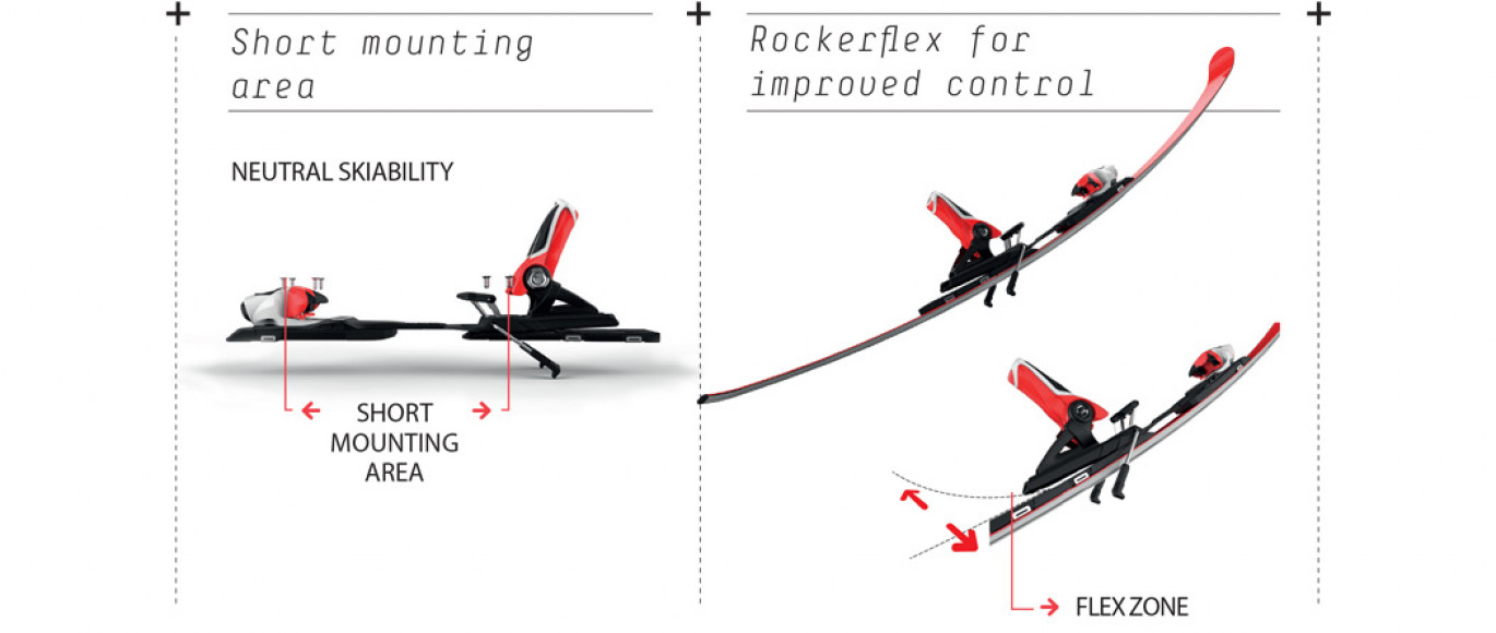 The ROCKERFLEX concept is derived directly from the prototypes used by our World Cup racers. With its smaller binding attachment area and semi suspended heelpiece, it provides enhanced control over the ski's flex, while retaining maximum precision: WITHOUT CONTROL, POWER IS MEANINGLESS!
