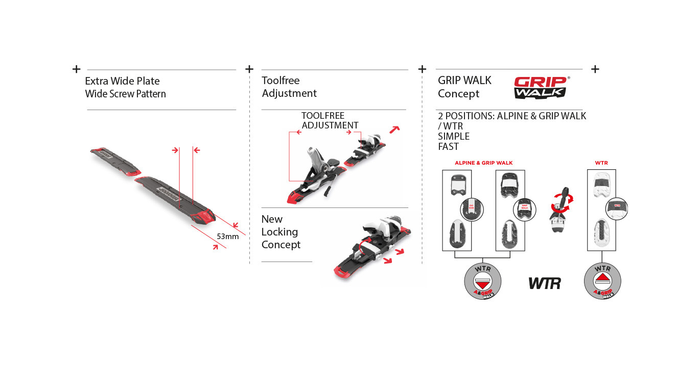 From the materials used and the width of the beams to the spacing between the screws, and the lateral jaws to strengthen the toe piece and interface: every detail has been carefully studied to ensure perfect cohesion between boot and ski, and transmit even the most subtle effort... The KONECT system is available with the SPX and NX technologies. It is compatible with all alpine boots and boots with both WTR walking soles and GRIPWALK.